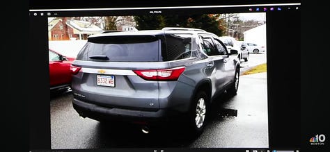 Later Brent drove to the victim’s home and photographed the outside of John’s vehicle (Traverse), as well as the security cameras near garage door area at John’s home.