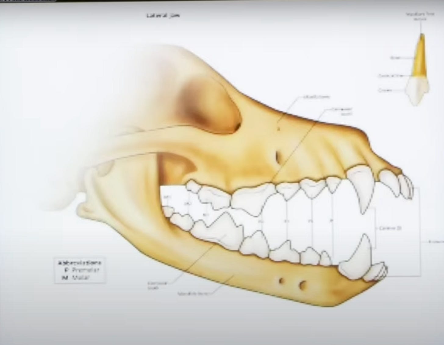 Photo diagram of K9 teeth are presented (below), and the doctor tells the jury that this is a “side view” of a K9 skeleton “with no skin”.