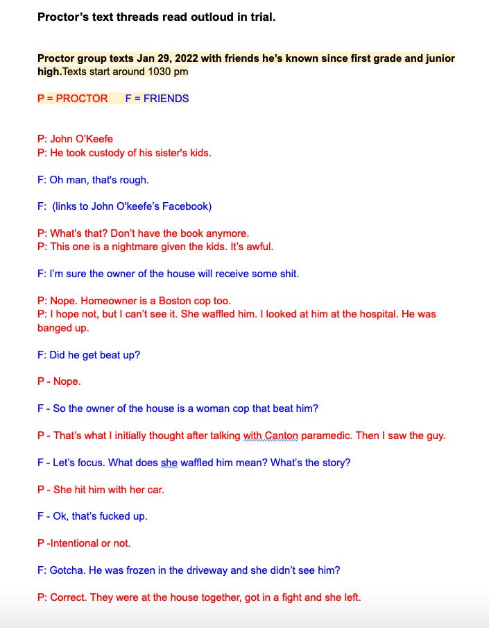 Defense called Diamandis to the stand to authenticate a group text message thread of friends who have known one another since their youth. The group text chat started years ago, and it includes himself and Trooper Proctor.