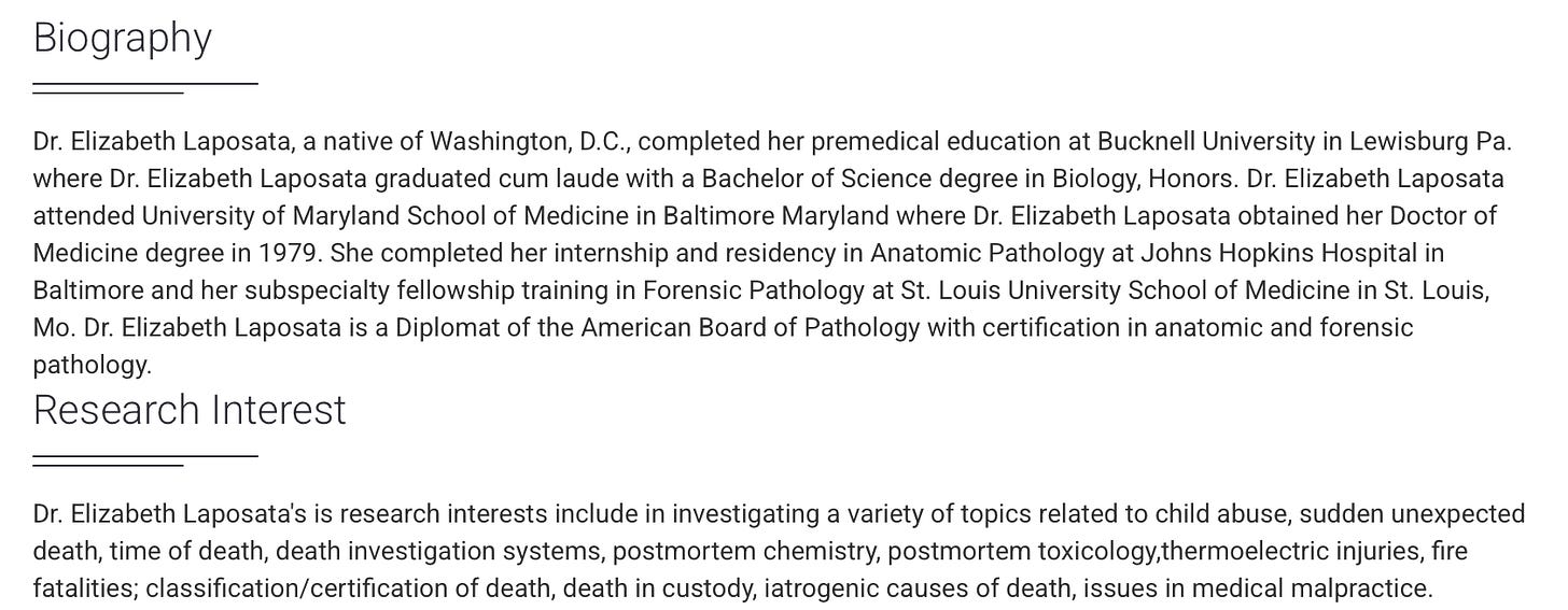 Dr. Elizabeth Laposata (Forensic Pathologist)